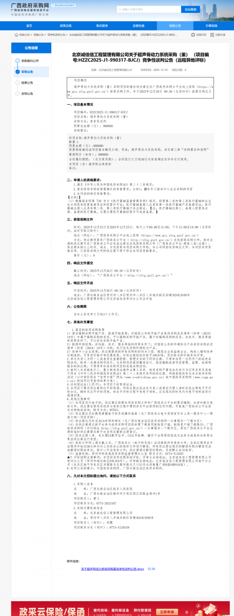 超声骨动力系统采购(重)竞争性谈判公告